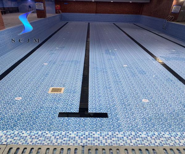 浙江省室外小區游泳池改造防水膠膜定制圖案案例